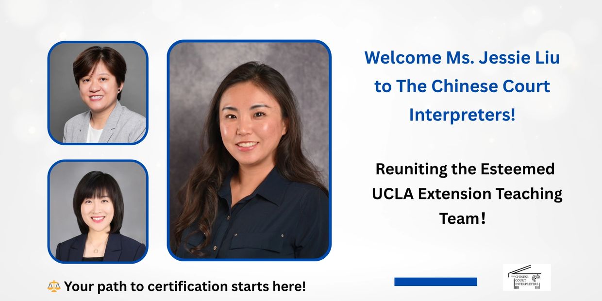 We are thrilled to welcome Ms. Jessie Liu, a renowned California Court Certified and U.S. Federal Court Qualified Mandarin interpreter, to The Chinese Court Interpreters!